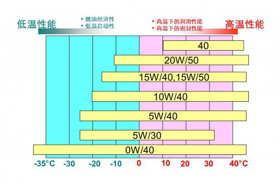 W后面(横杠后面)的数字是代表机油耐高温性的指标,数值越大说明在高温下的保护性能越好。像SAE40、SAE50这样只有一组数值的称为单级机油,不能在寒冷的冬季使用。而SAE15W-40、SAE 5W-40这样两组数值都有的,15是冬天时机油粘度号,40表示夏天机油的粘度号,通常被称为多级机油,应用环境范围更广。