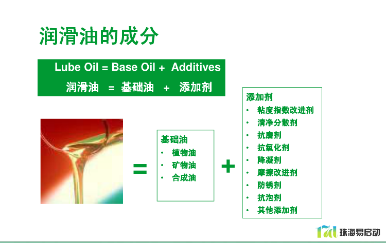 易启动润滑油是新加坡原装进口的润滑油,易启动润滑油采取70%-95%天然原油基础油(植物油、矿物油、合成油)+5%-30%的添加剂(粘度指数改进剂、清净分散剂、抗磨剂、抗氧化剂、防凝剂、摩擦改进剂、防锈剂、抗泡剂、其他添加剂),经过长期调配实验、遵循美国石油协会标准、接受ISO国际质量鉴定、ASTM封装检测,确保每一桶油都来源清晰,质量上乘!