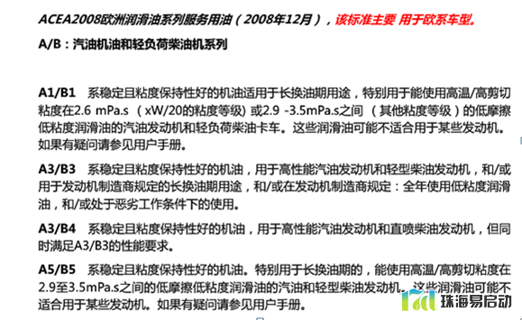 四、汽机油主要技术规格—ACEA(欧洲汽车制造商协会)