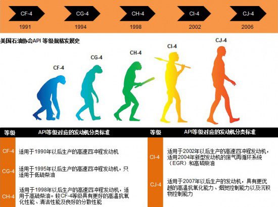 柴油机油API级别:CA, CB, CC, CD, CE, CF, CG, CH, CI