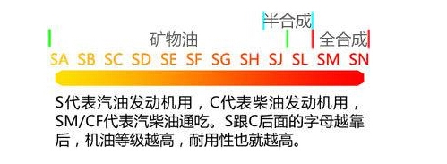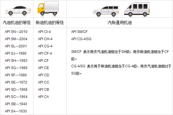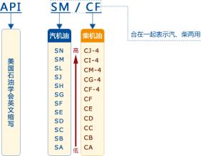 汽油机油API级别:SA, SB, SC, SD, SE, SF, SG, SH, SJ, SL,SM