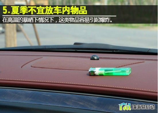 另一个就是,夏天尽量不要把一些平时常用的香水、发胶、老花镜、一次性打火机、电池、高压灭火器等物品放车内。因为在高温的暴晒下很可能引起爆炸。