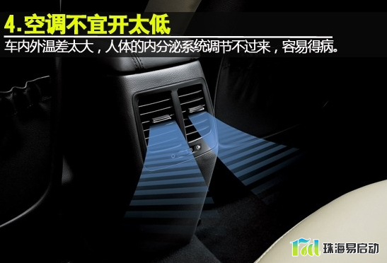 在开车过程中,则不要一味的贪图凉快,把车内空调温度调得很低。因此这样对人体有危害,车内外温差太大,人体的内分泌系统调节不过来,容易得病。另外,汽车油耗也会加大,等于与自己的荷包过不去。正常情况下,车厢内温度以与外界温度相差6℃左右为宜,正午时可略大一些。车主应在调整温度时对照一下室外气温。
