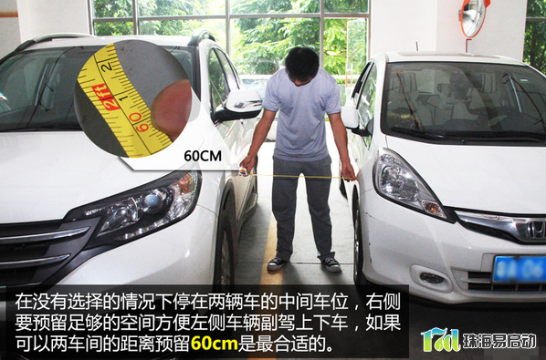 在没有选择的情况下停在两辆车的中间车位,右侧的位置要预留足够的空间方便左侧车辆副驾上下车。这个距离一般情况下驾驶员开门都比较小心谨慎,而副驾乘客的意识就比较欠缺。一般情况下,两车间的距离预留60cm是最合适的,如果有条件当然最好是完全打开车门都碰不到车身。