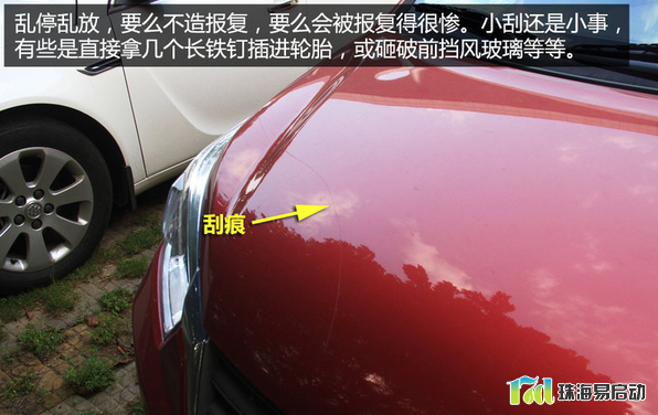 现在车位资源紧张,有些车主贪图便利,去到一个陌生的环境,见车位就停,谁知道那车位是别人的,脾气好的人放轮胎气,脾气差的往轮胎插钉子或者刮花车漆。私家车位一般都有明显的标记,比如公司附近的村中村,私家车位都是自己搭个棚,有些还用锁链锁着;小区的停车位更是有车牌号标记,这些车主切莫把自己的爱车停进去。在一些陌生未标明的车位或位置停车,最好在驾驶位靠窗或前挡玻璃里面放个移车提醒。