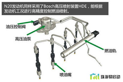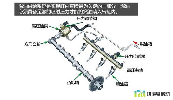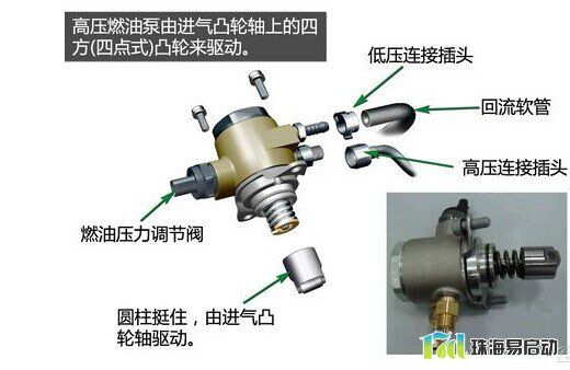 燃油供给系统是实现缸内直喷最为关键的一部分,燃油要喷入压力非常高的气缸内,就必须具备足够的喷射压力。