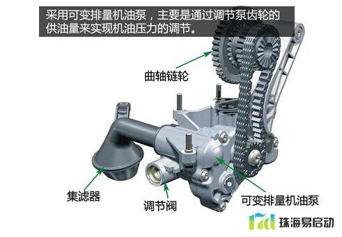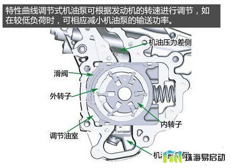 特性曲线调节式机油泵可根据发动机的转速进行调节,如在较低负荷时,可相应减小机油泵的输送功率而减小机油压力。