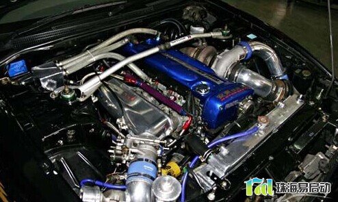 只有这些当然还不够,日产又为它加上了两个由盖瑞特生产的涡轮增压器,它们采用并列式的布局方式,每三个气缸推动一台涡轮,但是原厂对增压值的设定只有0.6bar,后期只需对增压值进行调整,就可达到350马力。而最为可贵的是,RB26原厂就为每个气缸匹配了独立的节气门,也就是所谓的6喉直喷系统,保证了在大马力输出下拥有充足的进气量。当把这些组合在一起,RB26可轻松达到280马力。