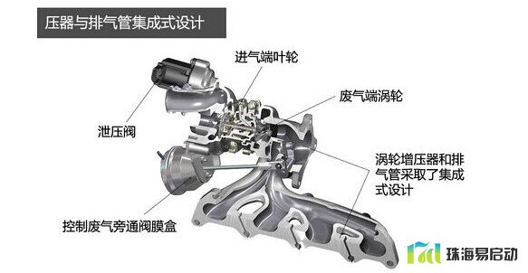 增压器与排气管集成式设计。1.4TSI这款发动机的涡轮增压器和排气管采用了集成式的设计,这样可以一定程度上减少多余零件的体积和重量,使得这套系统相对稳定可靠。