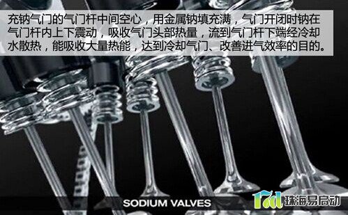 中空钠冷气门技术多用于柴油发动机。由于涡轮直喷发动机内部工作温度较高,使得排气门工作环境比较严酷,因而就引进了钠冷气门技术。通用Ecotec LLU发动机的排气门使用的就是钠冷气门。钠冷气门是空心的,在气门中央的空腔中会填满金属钠。当气门工作时,头部温度非常高,钠吸热气化上升至气门杆顶部经冷却水散热,从而提高是气门散热能力得到提升。同样的技术在日产MR16DDT以及通用自己的LDK发动机上都有运用。