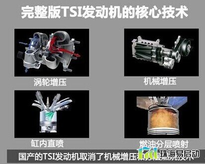 大众的EA111系列1.4TSI发动机是大众于2005-2006年间推出的排量为1.4L具备双增压、缸内直喷技术的发动机。TSI代表的是Twincharger Fuel Stratified Injection这几个单词首字母的缩写,通过字母表面意思可以理解为双增压+分层燃烧+缸内直喷的意思。