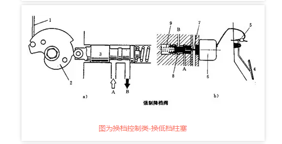 换挡控制原理 将节气门开度信号、车速信号、换挡控制手柄的位置信号灯变成液压信号,利用液压传动原理,有液控装置向执行元件输送压力油,使其工作,以得到不同的档位。